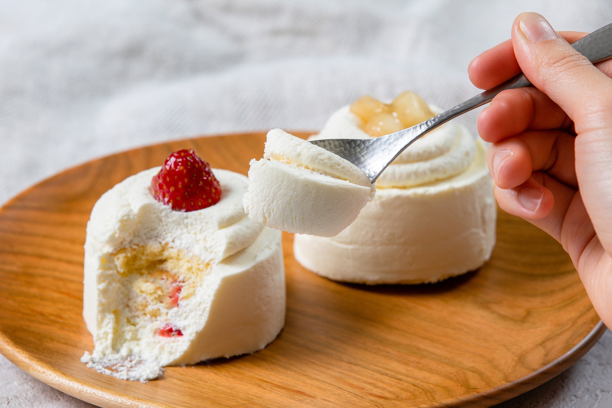 さらに、今が旬のフルーツに合わせて、それぞれ乳脂肪分の比率を変えた「コクのあるリッチなクリーム」と「軽やかなクリーム」の2つの特製クリームを作りました。