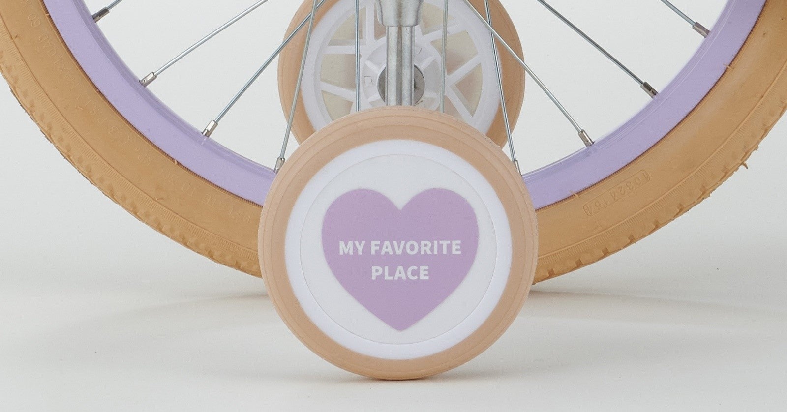 ガラガラ音が小さめの静音タイプ、ロゴつき補助輪。