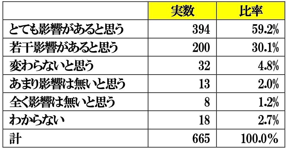 とても影響があると思う59.2%、若干影響があると思う30.1%