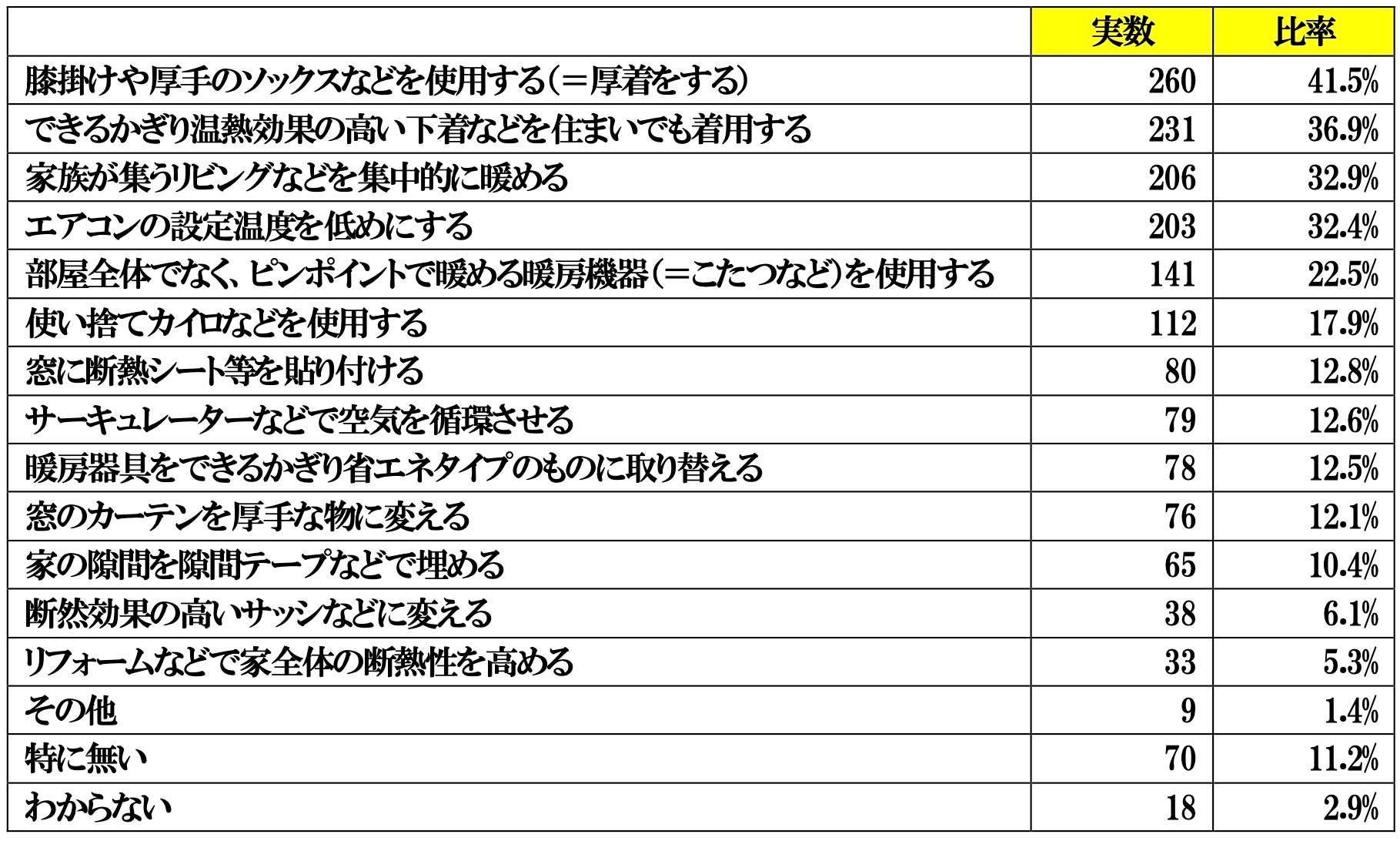 ● 今年の冬場の光熱費を抑えるための対策BEST5