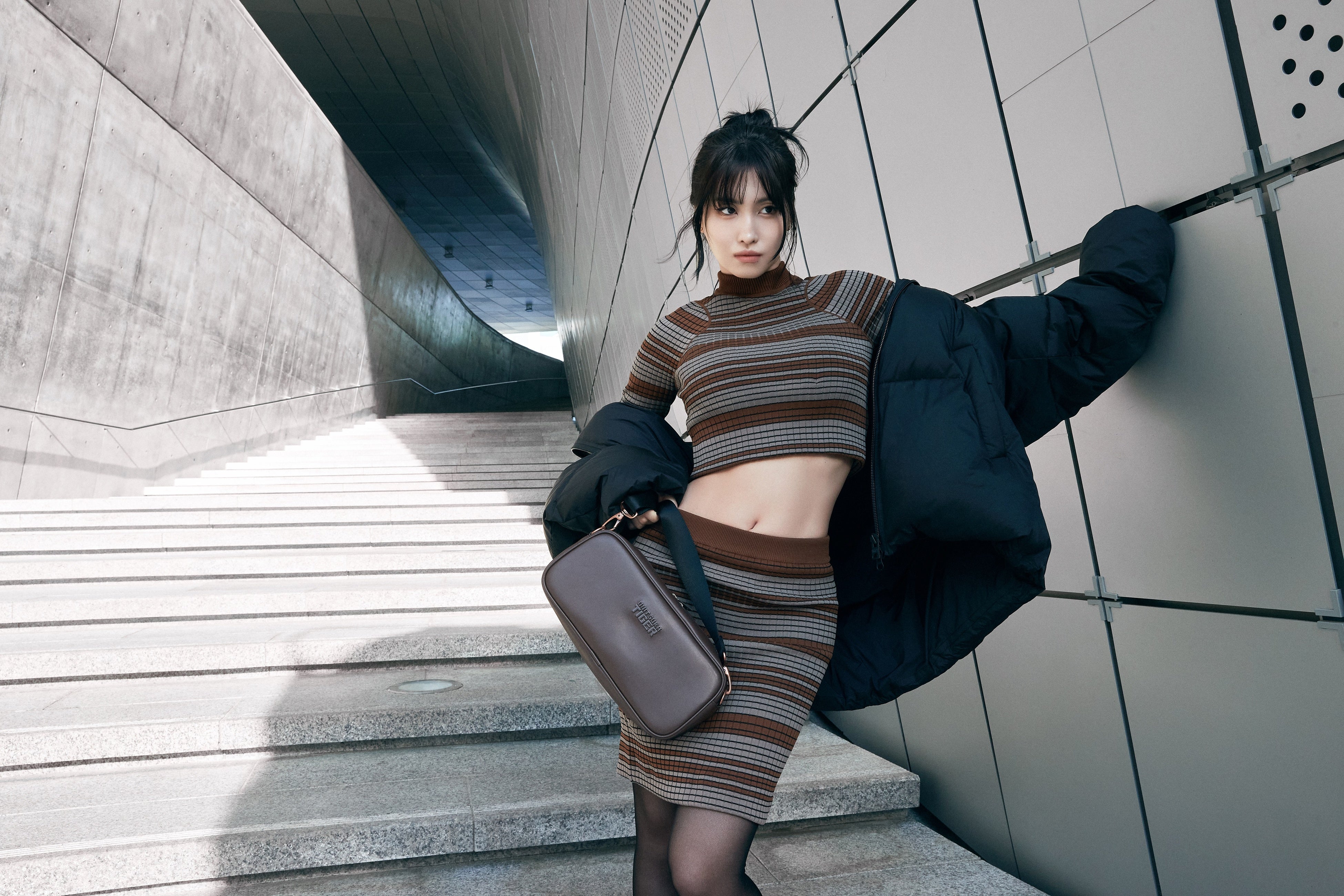 今回のビジュアルには、ブランドアンバサダーである TWICE の MOMO 氏を起用しています。2024 年 秋冬コレクションのテーマは「アーバンウインター」です。ウェットなコーティングやリブのテーラリング、ユニークなシルエットといったディテールにこだわりつつ、アーバンライフに欠かせない動きやすさや軽さを追求したコンフォートさも兼ね備えています。