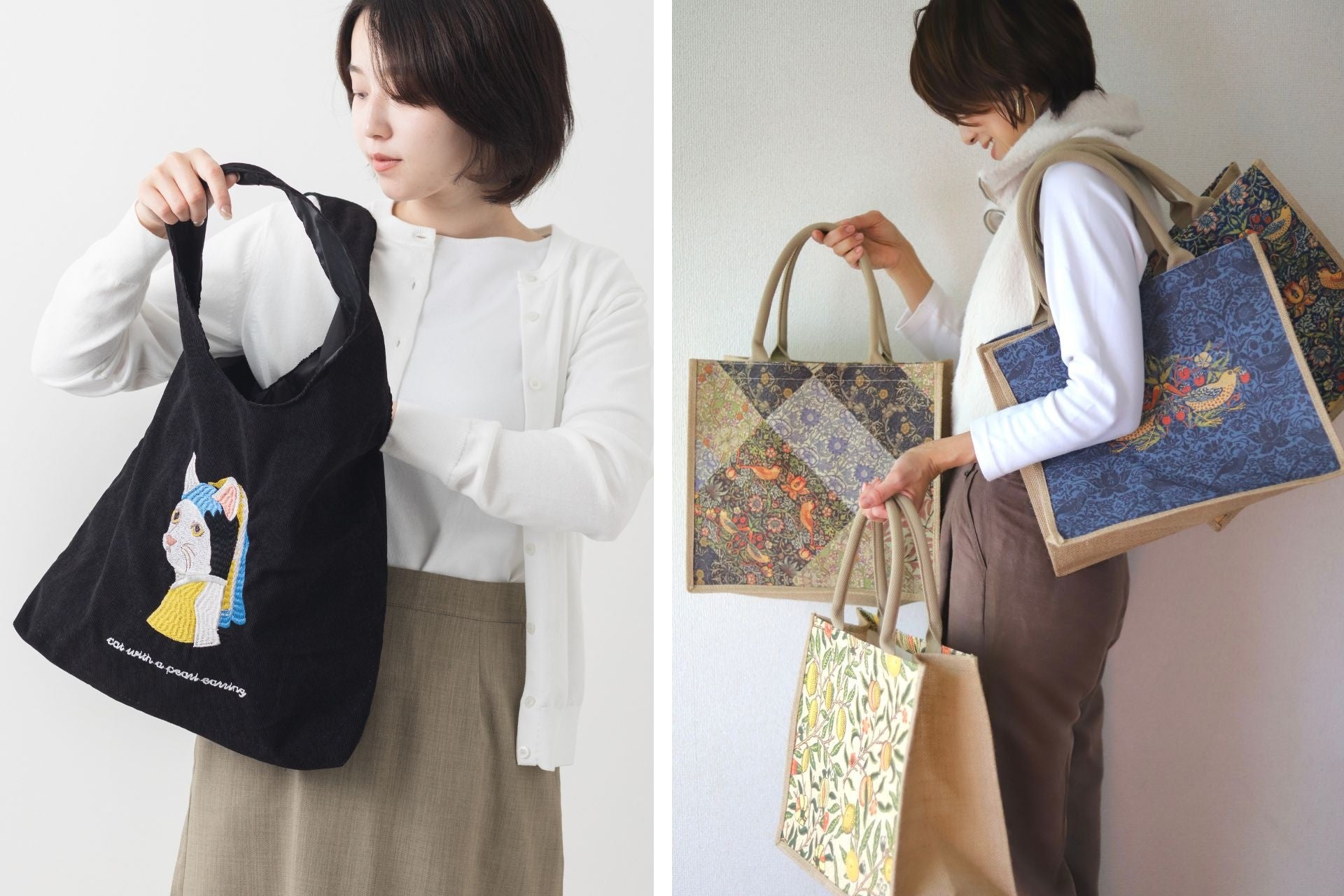 猫犬デザイン刺繍 コーデュロイ トートバッグ 60×40cm