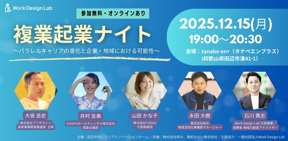 令和7年12月に、和歌山県の「複業起業×空き家活用」プロジェクトきっかけに、田辺市起業家と首都圏複業人材が、会社員が辞めずに起業する「複業起業」をテーマにセッション。個人・企業・地域の3視点からその可能性と課題を深掘りしました。