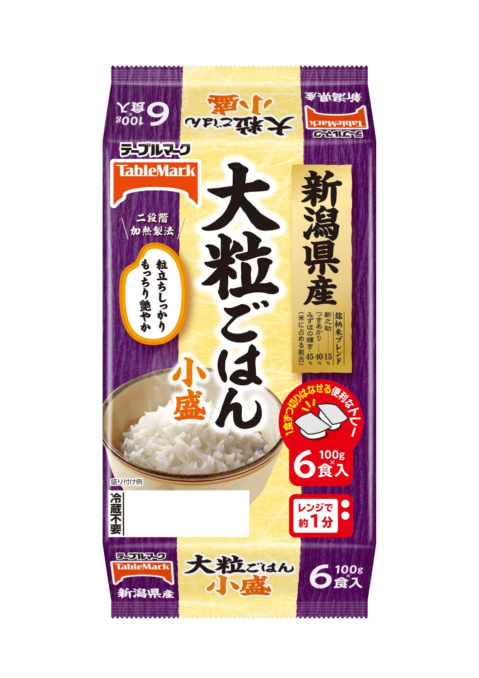 パックごはん | 新潟県産 大粒ごはん 小盛(分割)6食 | 600g(100g×2食×3個) | ・レンジ調理 ・熱湯調理 |