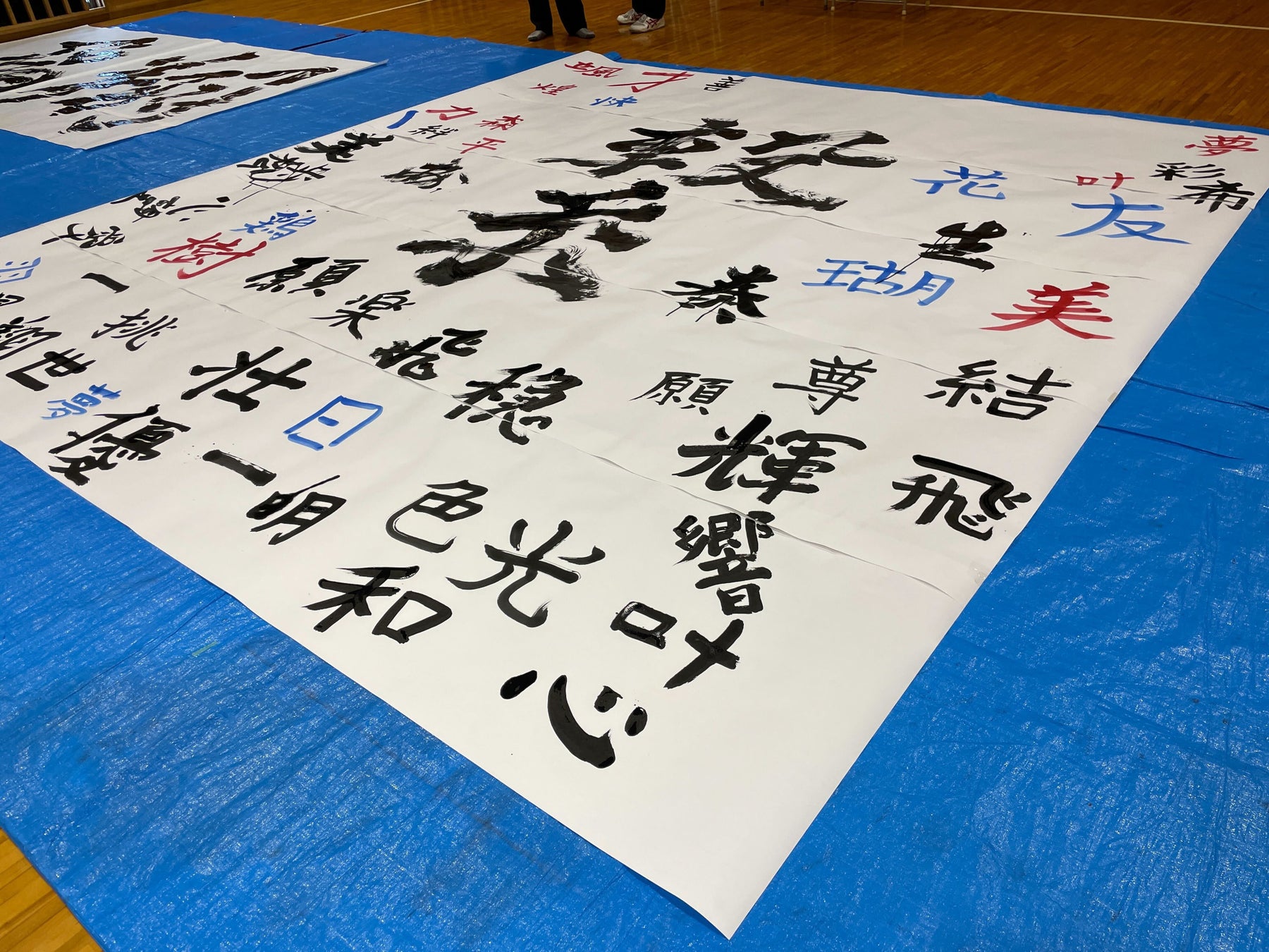 ・真澪さんと一緒に、参加者全員で1つの作品を作り上げるワークショップ・習字を用いたレクリエーション