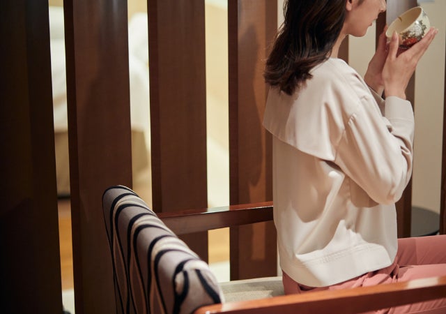 和と洋のエレメントが上品に融合したコンテンポラリーな空間は、やさしく包み込むように旅の疲れを癒し、一方で力強く、明日への活力を刺激します。ゲストルームやレジデンスからは煌びやかな大阪の街並みを見渡すことができ贅沢な時間が流れます。
