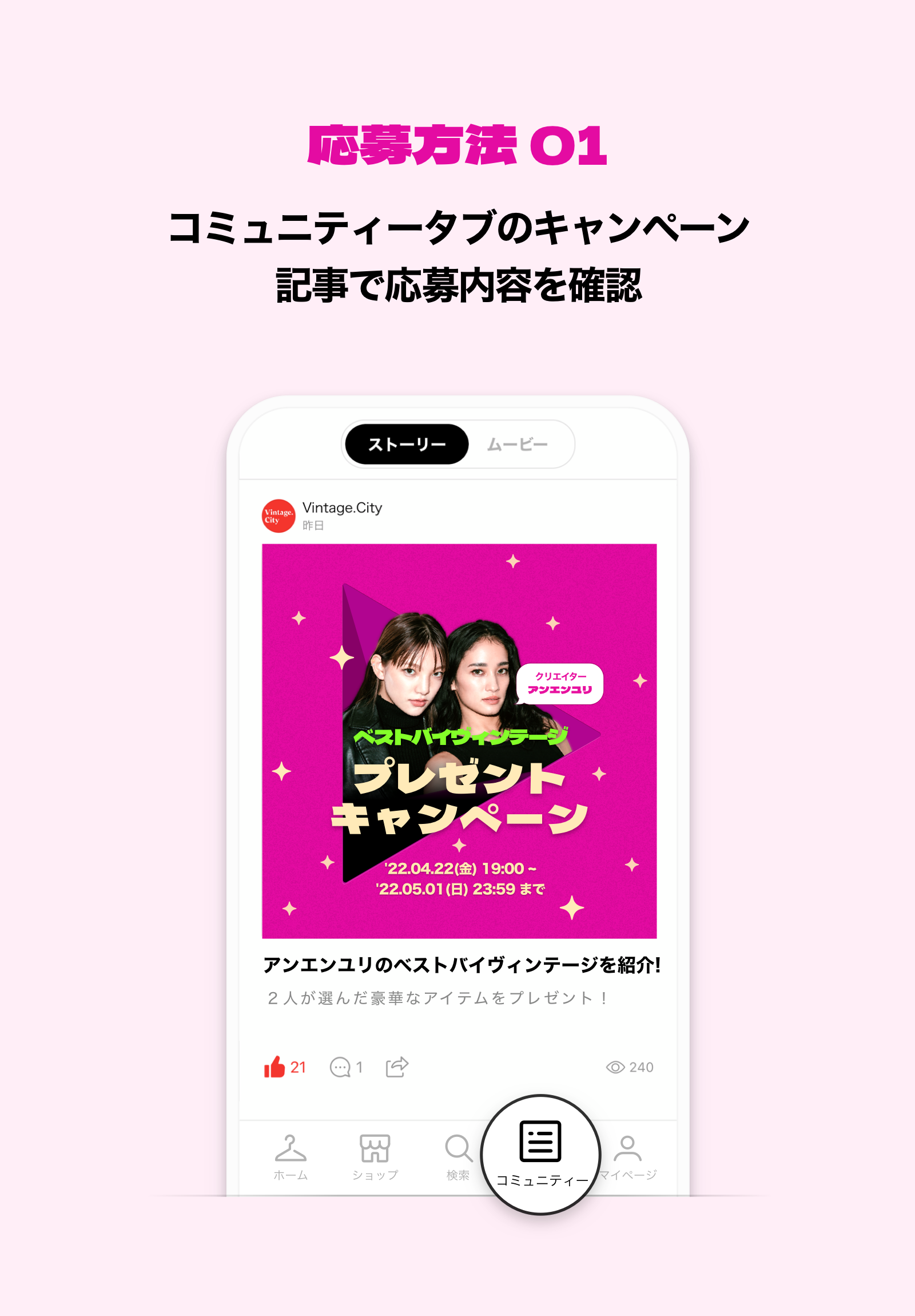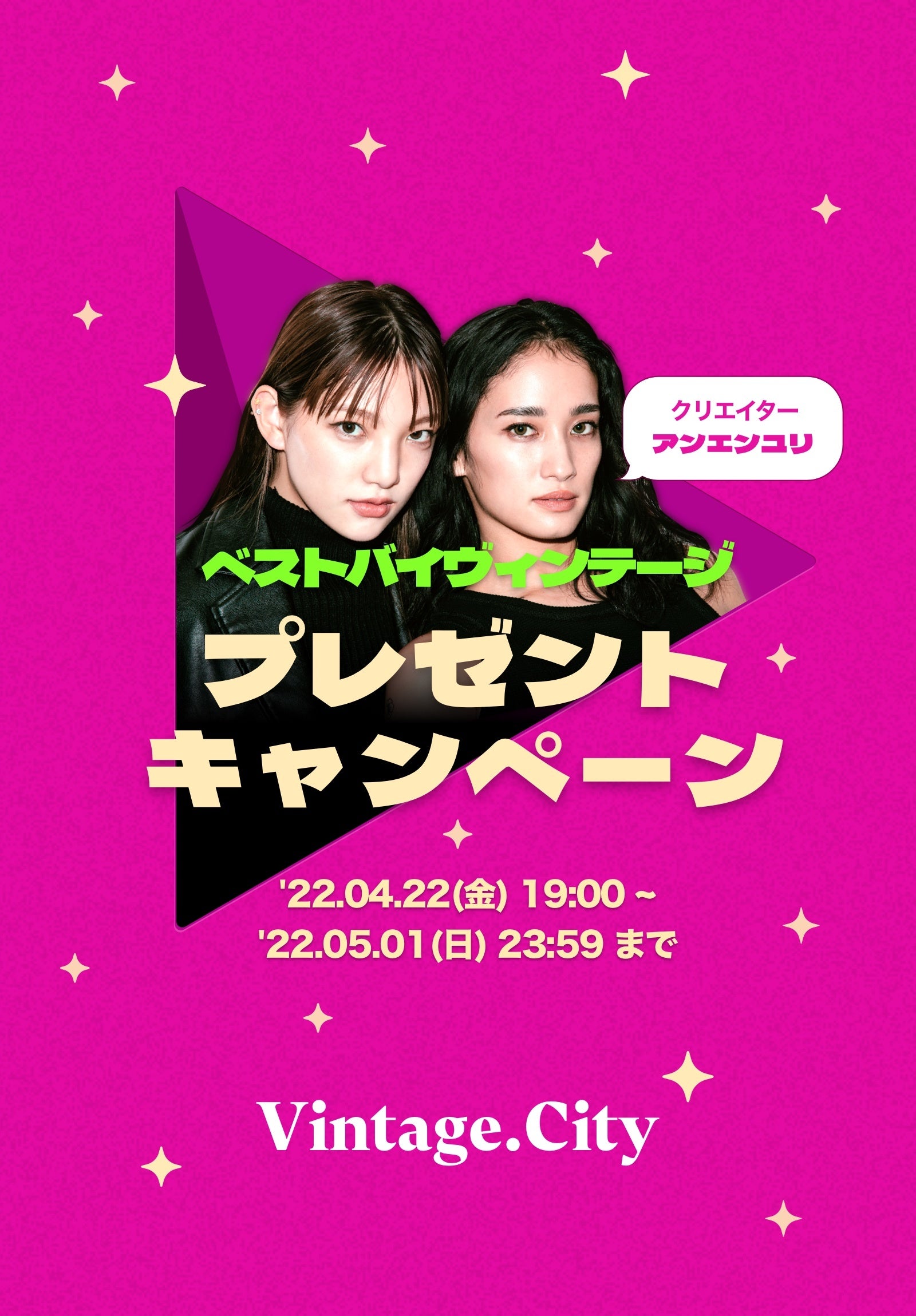 - プレゼント応募詳細: 2022年4月22日(金)19:00にVintage.Cityアプリ内で発表予定