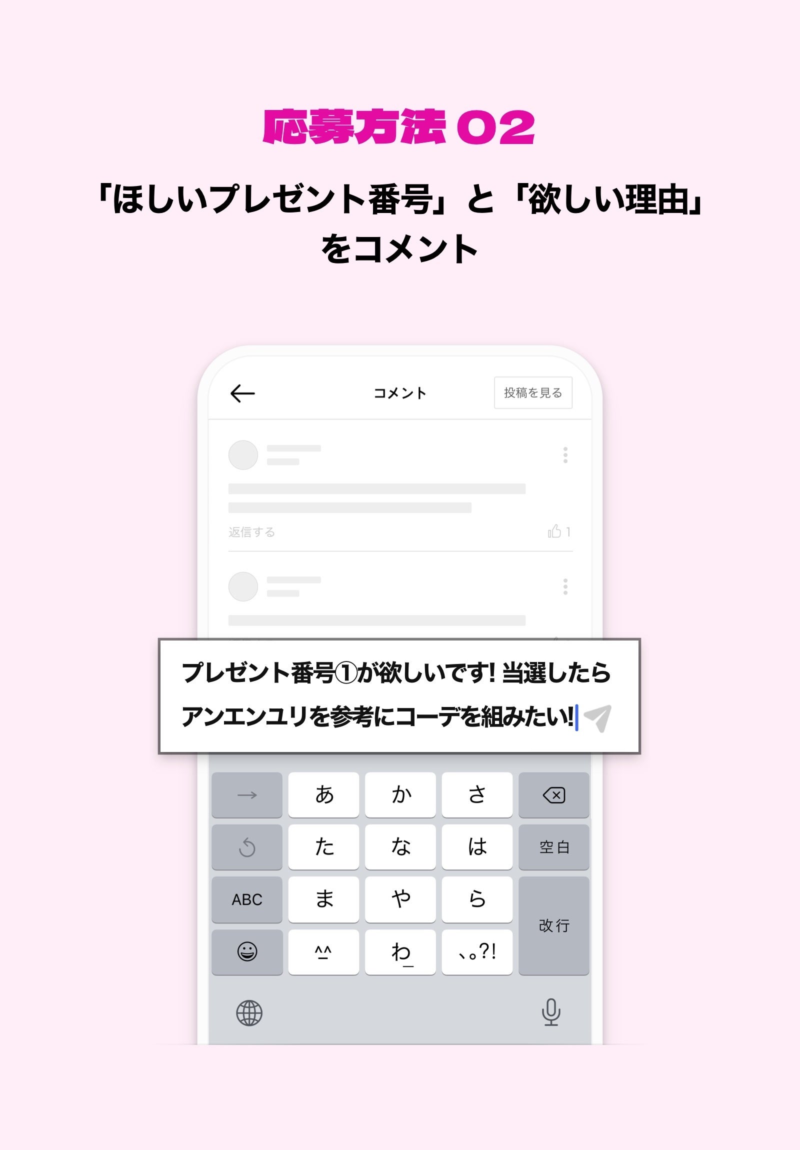 「キャンペーン記事」のコメント欄に以下をコメントして応募完了