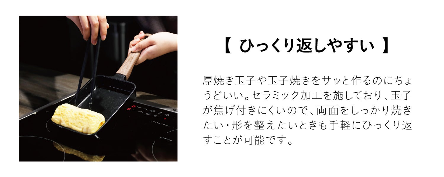 - 調理中はひっくり返しやすく、調理後はお手入れもラクな“内面セラミック加工”