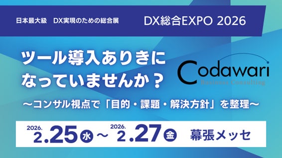 コダワリ・ビジネス・コンサルティング株式会社(本社:東京都中央区/代表取締役社長:大谷内 隆輔)は、2026年2月25日から2月27日までの3日間、幕張メッセで開催される「DX 総合EXPO 2026 春 東京」に出展いたします。