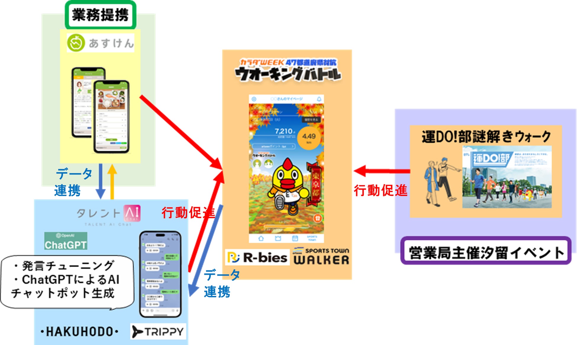 カラダWEEK期間中に、株式会社asken(本社:東京都新宿区、代表取締役社長:中島洋)が運営する食事管理アプリ「あすけん」の健康度データや「47都道府県対抗ウオーキングバトル」の歩数や順位データと連携して、参加者がより健康的な生活ができるようにタレントAI ChatがLINE上で、ユーザーに向けた応援をしてくれます。