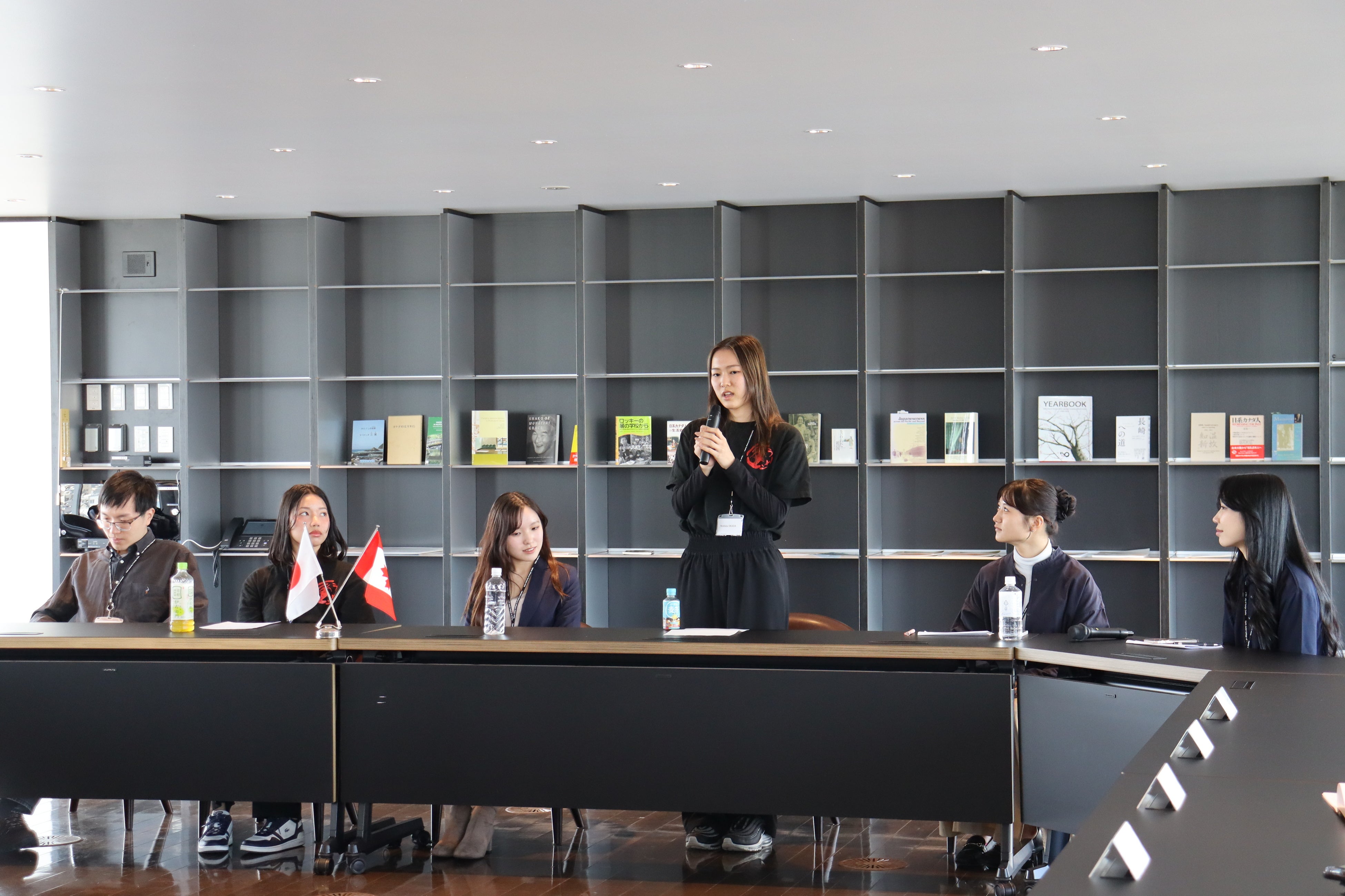 発表後には、プレゼンテーションを行った学生のほか、カナダからの留学生やカナダへの留学経験者・予定者も加わり、議員団とのディスカッションを実施しました。