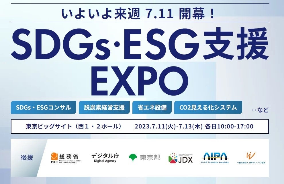 <7/11~東京ビッグサイトで初開催!> サステナブル社会実現のためのビジネスイベント『 第1回 SDGs・ESG支援EXPO 』
