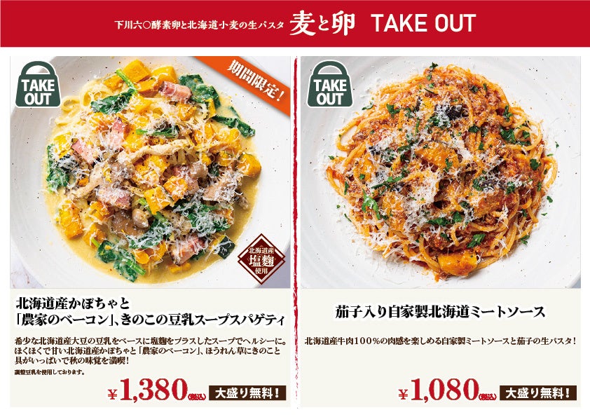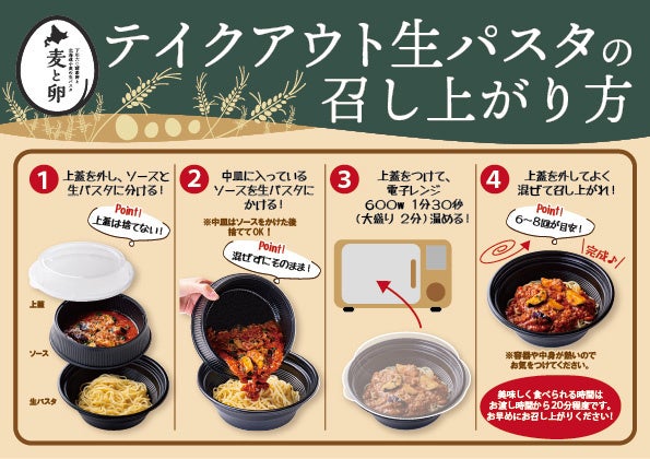 ■2022年9月20日(火)から北海道のブランド卵と北海道小麦を使った店内製麺にこだわる生パスタ専門店『麦と卵』全店で、テイクアウトができるようになりました!