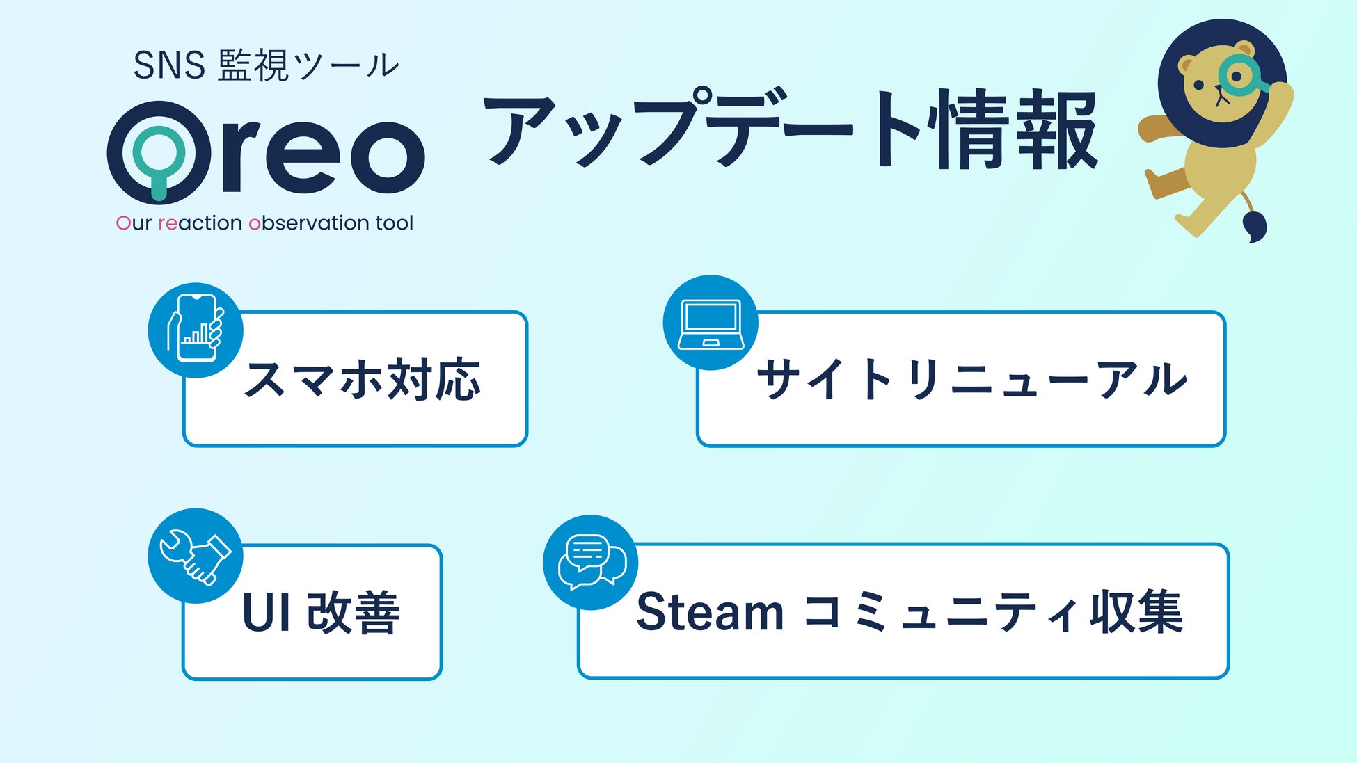 「エンタメ技術で未来を照らす」を理念に、ソフトウェア品質保証、エンタメ/AIソリューション開発、セキュリティサービスの事業を展開するAIQVE ONE(アイキューブワン)株式会社(本社:東京都千代田区、代表取締役社長:山崎 太郎、以下AIQVE ONE)は、エゴサーチを自動化するSNS監視ツール「Oreo(オレオ)」の新機能を2025年11月11日にリリースしました。収集データの設定・確認がスマートフォンから操作可能になり、Steamはレビューだけでなくコミュニティの収集にも対応いたします。