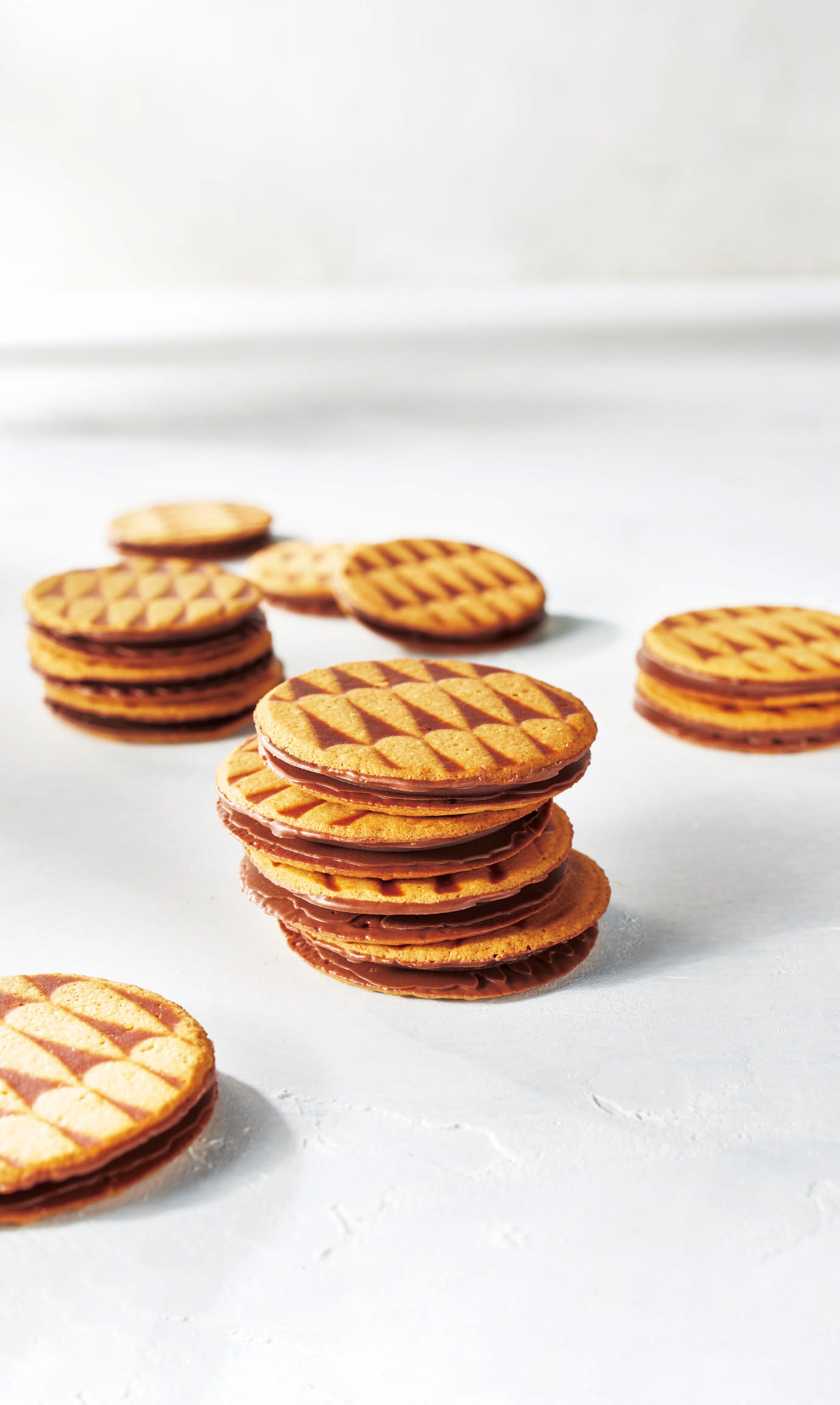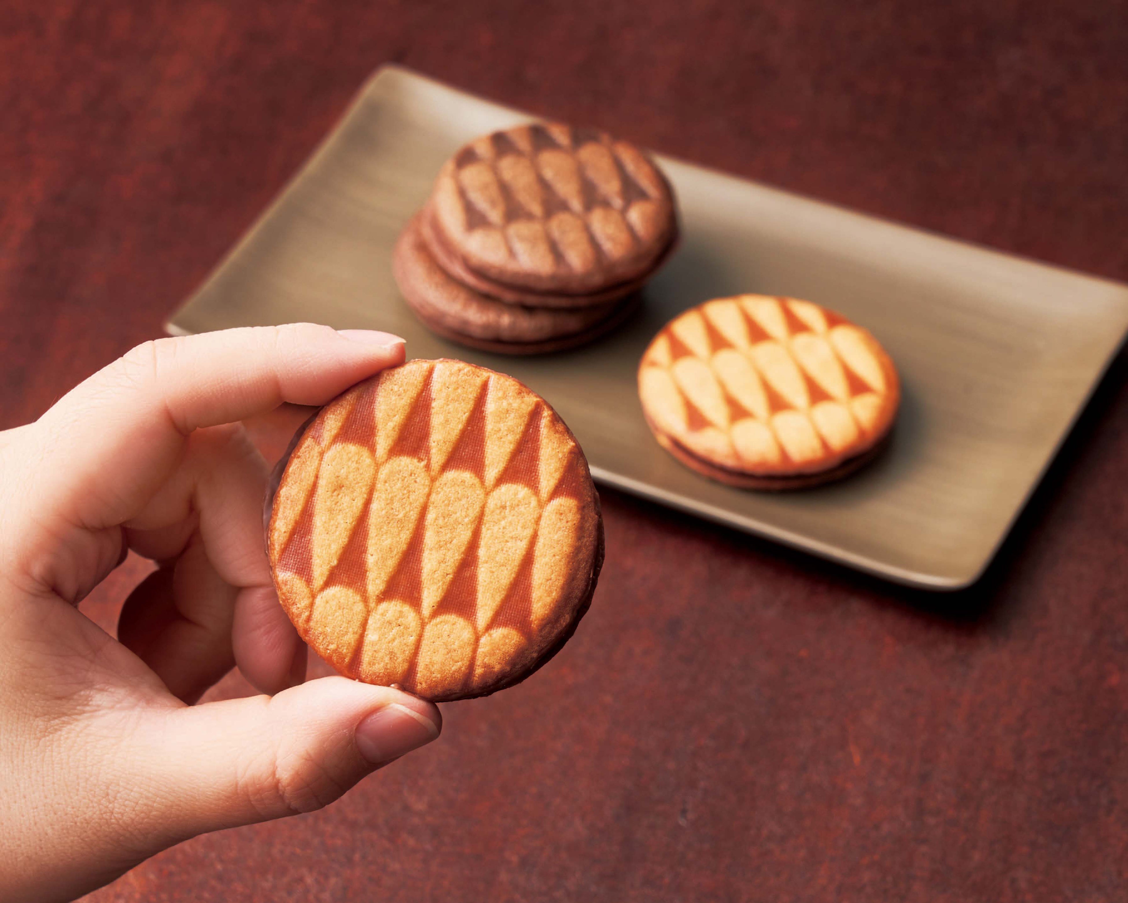 キャラメルを包んだチョコレートをコクのあるサクサクのクッキー生地でサンドしたキャラメルサンドクッキー。定番のオリジナルと、ほろ苦なコーヒーフレーバー入りの2種を展開。1枚でしっかり食べ応えがあるのに、ついつい、もう一枚、と手がのびるおいしさで、自分へのご褒美だけでなく、大切な方への贈り物にもぴったりです。