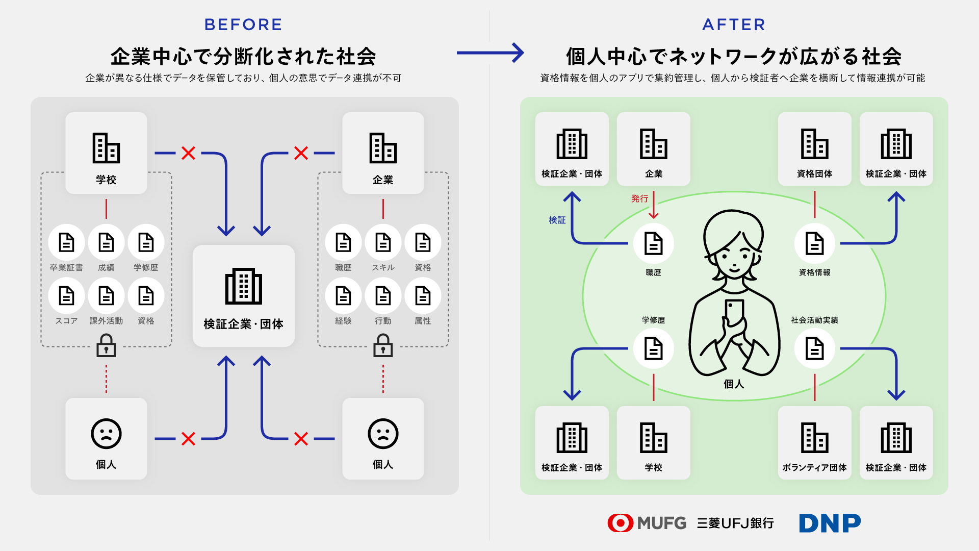 【三菱UFJ銀行】「分散型ID」を用いた人的資本経営支援と安心安全なデータ流通基盤構築に向け大日本印刷と検証開始!