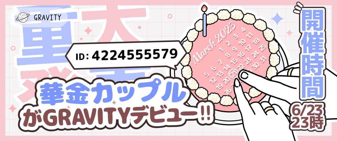 GRAVITYを盛り上げている、声とチャットで交流できる「音声ルーム」に、人気動画クリエイターの華金カップルが登場します。日常生活の話やラブラブの秘訣など音声ルームでどのようなトークが繰り広げられるのか!?トークを見逃さないよう、事前にSNSアプリ「GRAVITY」をダウンロードして当日音声ルームでのリアル生配信をお楽しみください。