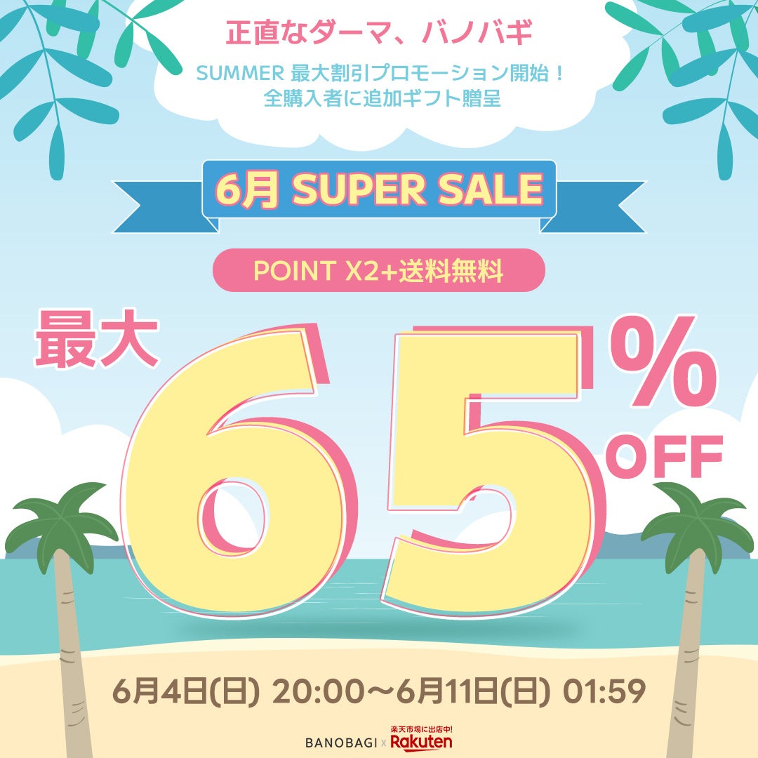 正しいダーマ・バノバギ(BANOBAGI)が楽天市場で開催される大型イベント「スーパーセール」に参加します。 開催頻度は毎年3ヶ月周期、年に4回行われ、今回の6月スーパーセールは6月4日(日)20:00から6月11日(日)01:59まで開催します。