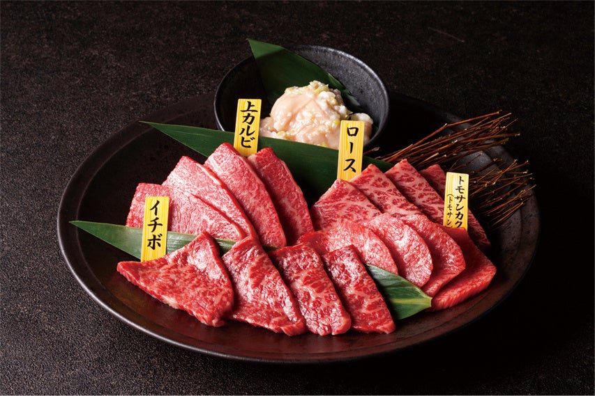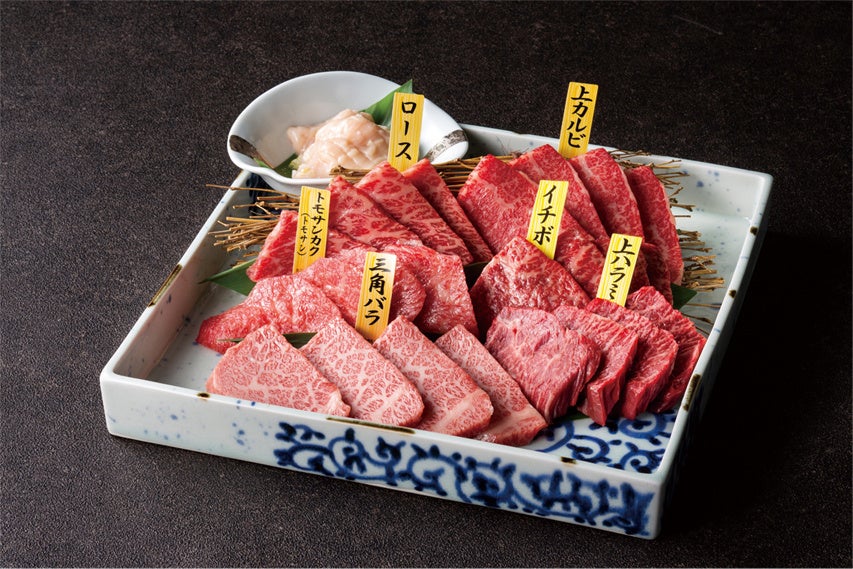 肉盛合せ(上カルビ、上ロース、あか牛希少部位、ザブトン又はイチボ、シャトーブリアン)