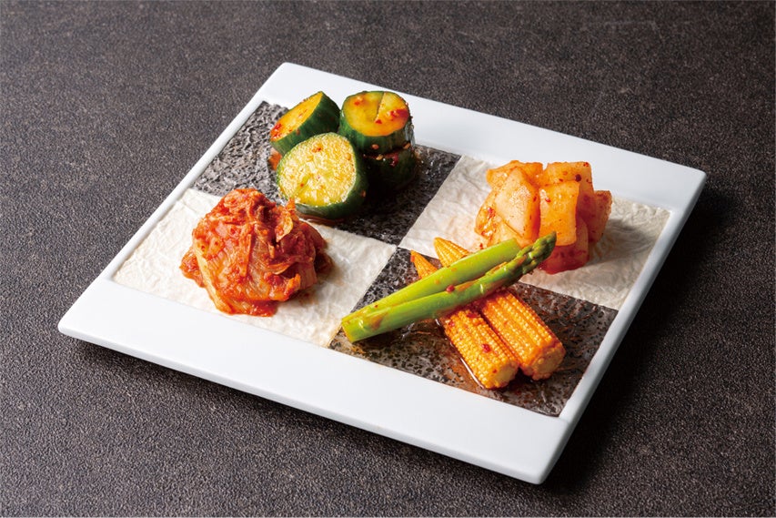 キムチ2種・ナムル2種・黒と赤サラダ・厚切りタン塩