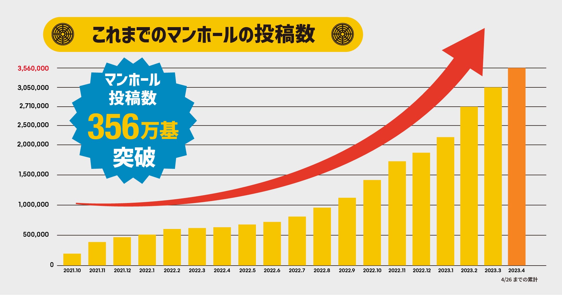 市民が集めたマンホール画像は356万枚を突破!日々の投稿数も引き続き増加!