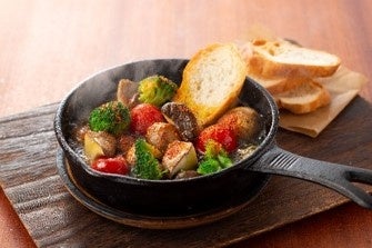 あご魚醬や海鮮の旨みが効いたアヒージョのベースに、めんたいの辛みを感じられる、今までにない博多風のアヒージョです。ピリッと辛さのある仕上げの香味スパイスで、旨辛さがやみつきになる味わいです。