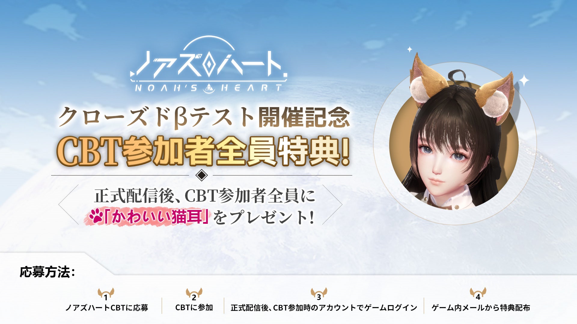 『ノアズハート』正式サービスに先立ち、内容調整及びゲーム動作の確認を目的としたクローズドベータテスト(CBT)を実施いたします。