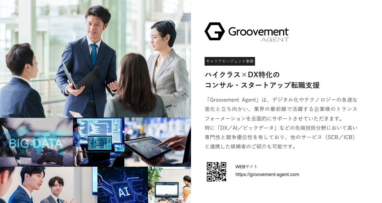 プロフェッショナルの新たな挑戦を支援するGroovementハイクラス×DX特化のコンサル・スタートアップ転職を支援する「Groovement Agent」をローンチ