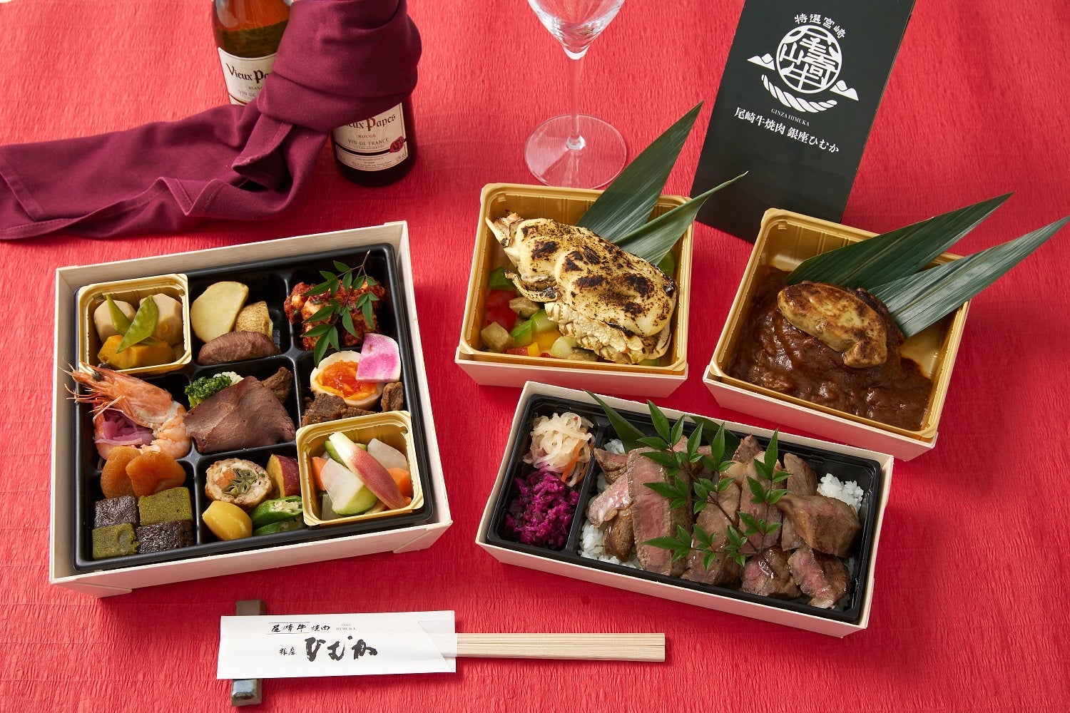 尾崎牛サーロイン&フィレステーキ重、トリュフのせ和牛ハンバーグ、伊勢海老黄金焼入り。