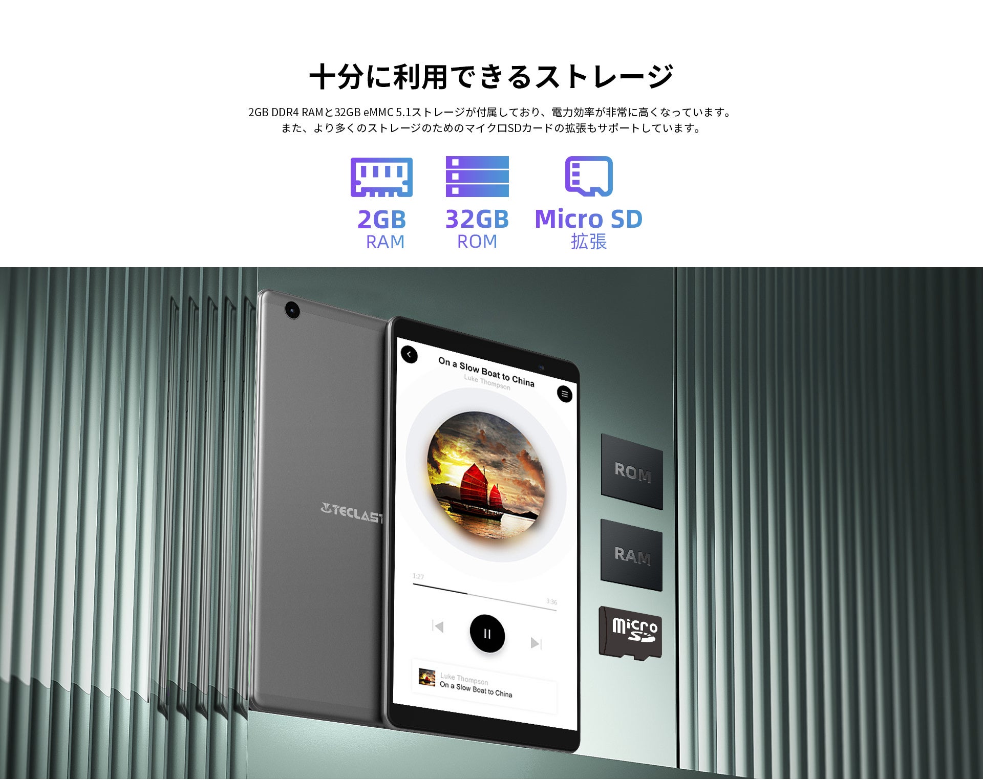 ストレージは2GB+32GBで、Micro SDカードを使用すると、より大きな容量に拡張できます。仕事にとってちょっと不足かもしれなく、日常で映画、ドラマや電子辞書を見ることなど十分だと思いますね。子供にも最適。