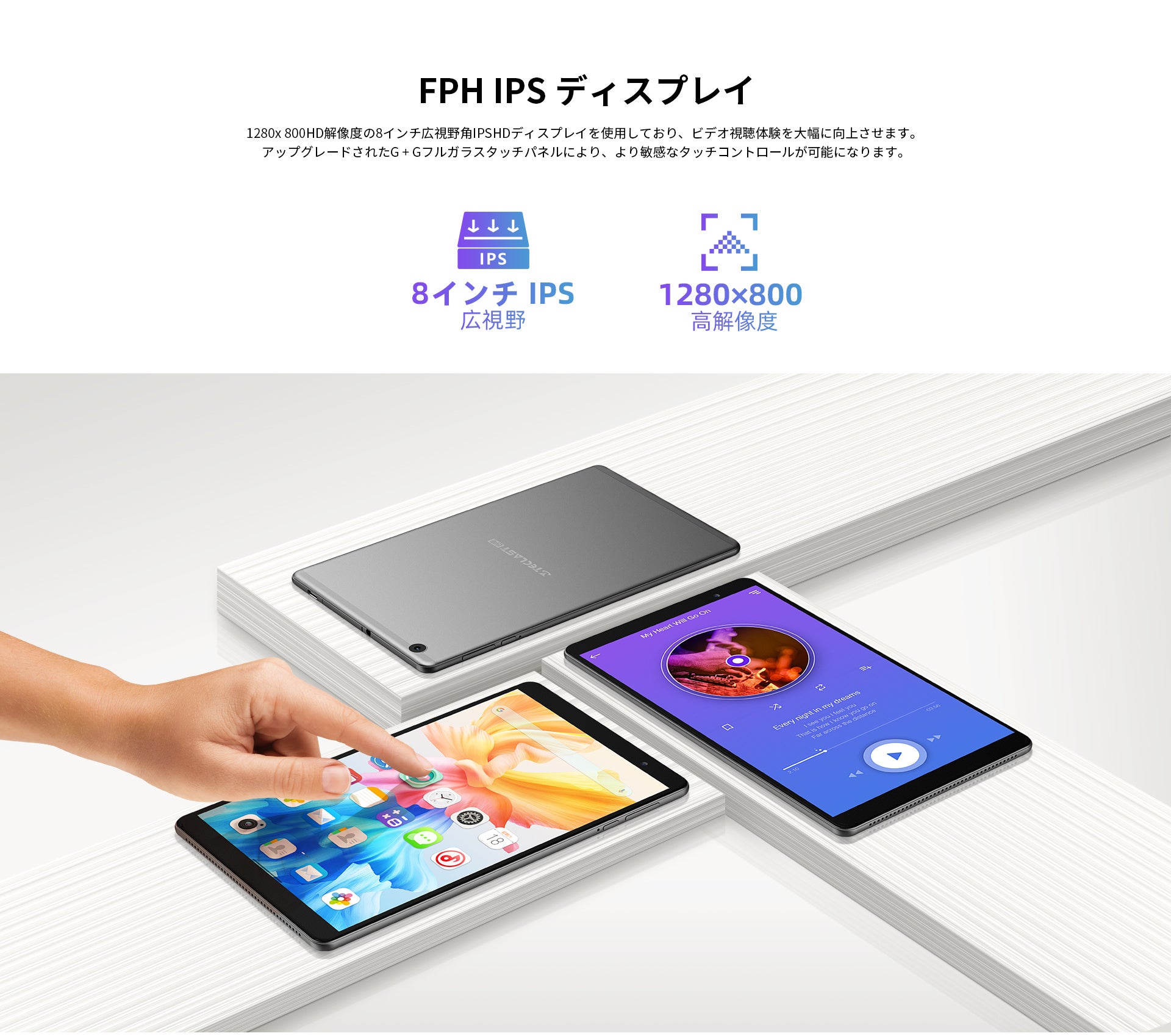 【P85】は8インチタブレットです。IPS HDディスプレイを利用し、1280*800の解像度を提供しています。アップグレードされたG + Gフルガラスタッチパネルにより、より敏感なタッチコントロールが可能になります。