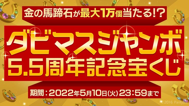 ダービースタリオン マスターズのサービス開始5.5周年を記念して最大1万個の金の馬蹄石が抽選で当たる