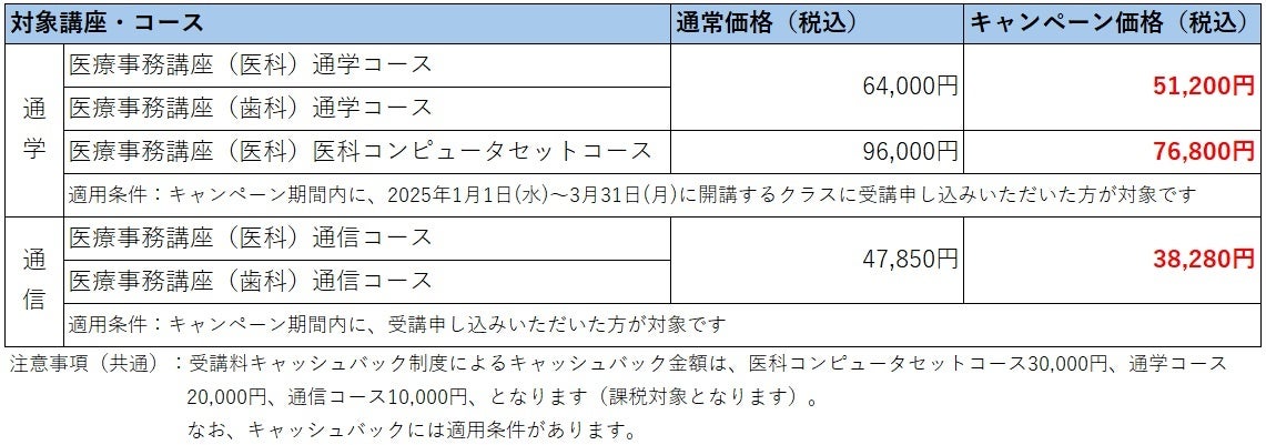 【医療事務講座 受講料20%OFFキャンペーン 概要】