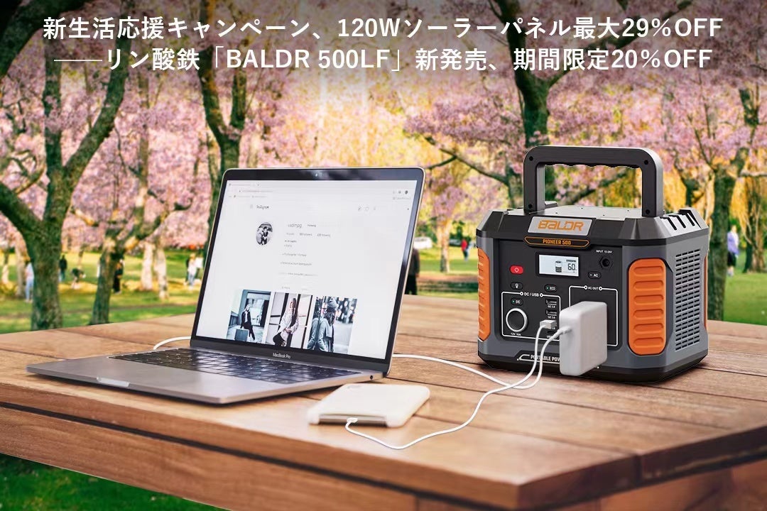 通常の電源に比べ6倍の長寿命リン酸鉄リチウムイオン電池を採用しているので、BALDR 500LFリン酸鉄ポータブル電源新品があれば、車中泊やキャンプ、ピクニック、旅行、花見、野外撮影などの電力不足をもう心配する必要がありません!