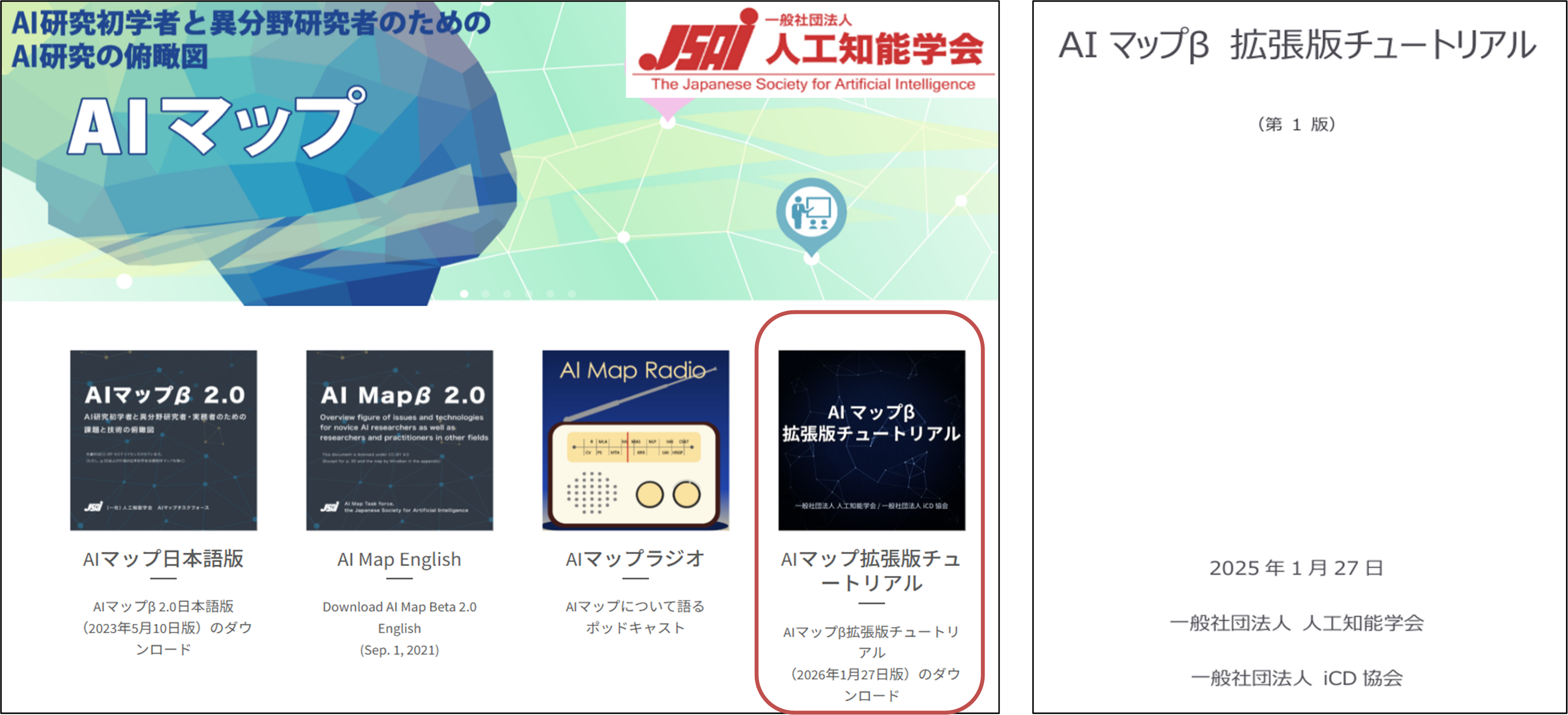 一般社団法人iCD協会(東京都千代田区、理事長:金修、以下「iCD協会」)と一般社団法人人工知能学会(東京都新宿区、代表理事会長:栗原聡、以下「AI学会」)は進化と多様化が加速するAIについて、その導入・適用に必要となる構想策定をサポートするための手引きとして「AIマップβ拡張版チュートリアル」を策定し、一般公開しました。