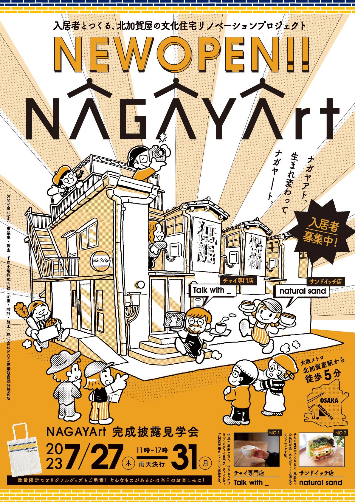 この度、リノベーションが完了し、本建物を「NAGAYArt(ナガヤート)」と命名。オープニングイベントとして、7月27日(木)から31日(月)まで完成披露見学会を実施いたします。