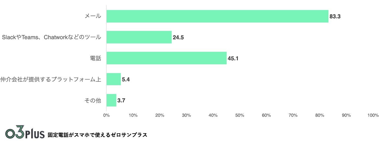 82.6%の方が電話番号を分けていないという回答をされたものの、発注元との主な連絡手段に「電話を使用する」と回答した人は45.1%と、約半数が発注元と電話で連絡していることがわかりました。
