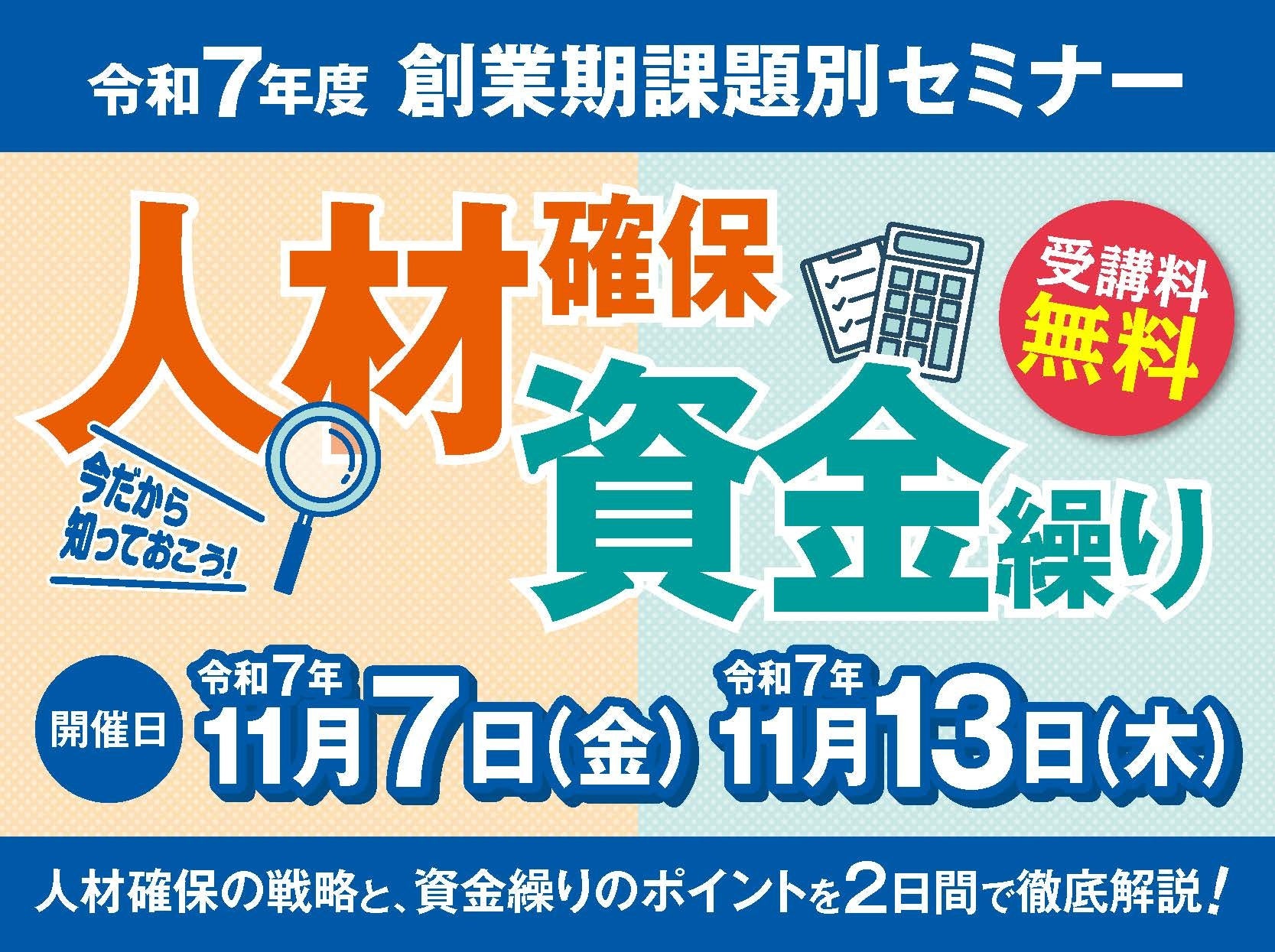 令和7年11月7日・13日「創業期課題別セミナー」を開催します!