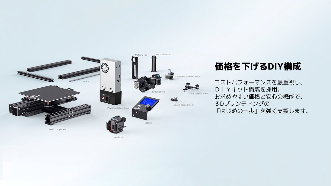 誰もが手を出しやすいお手頃な価格帯で、あなたの3Dプリンターデビューを応援します。