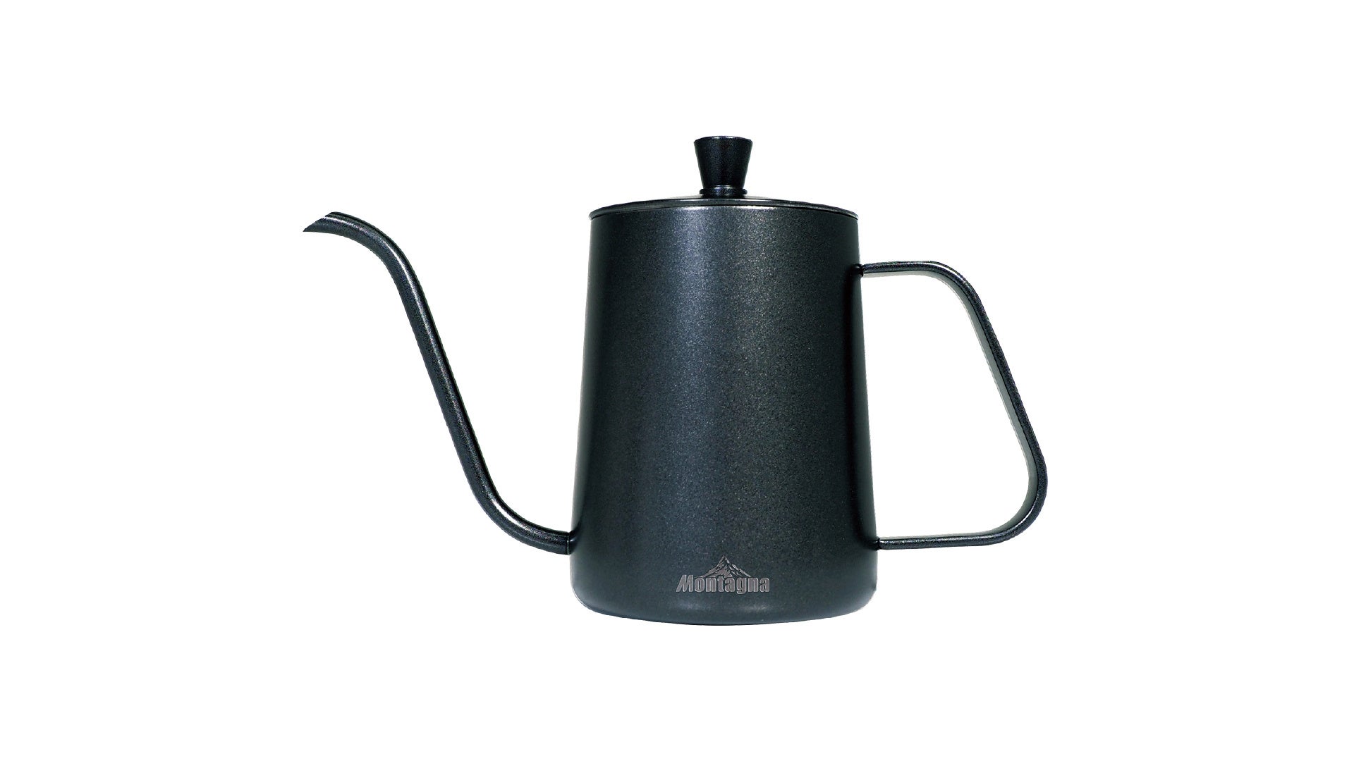 特徴:ソロキャンにぴったりなコーヒー1杯分(350ml)をドリップできるット。注ぎ口は極細で湯量をコントロールしやすく使いやすい。スタイリッシュなブラック仕様。