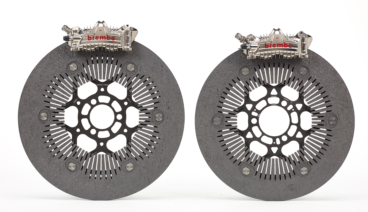 MotoGP用ブレーキシステムの総重量は、フロントとリアで約5.5kgです。
