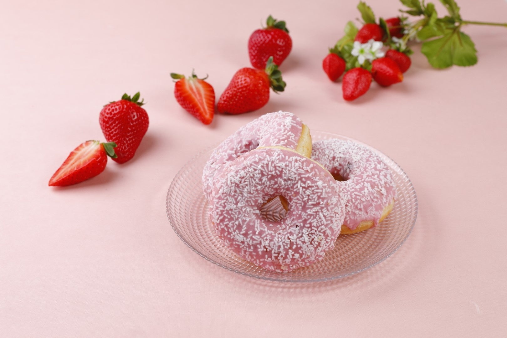 甘酸っぱいイチゴが優しい食感のドーナツを引き立てます。