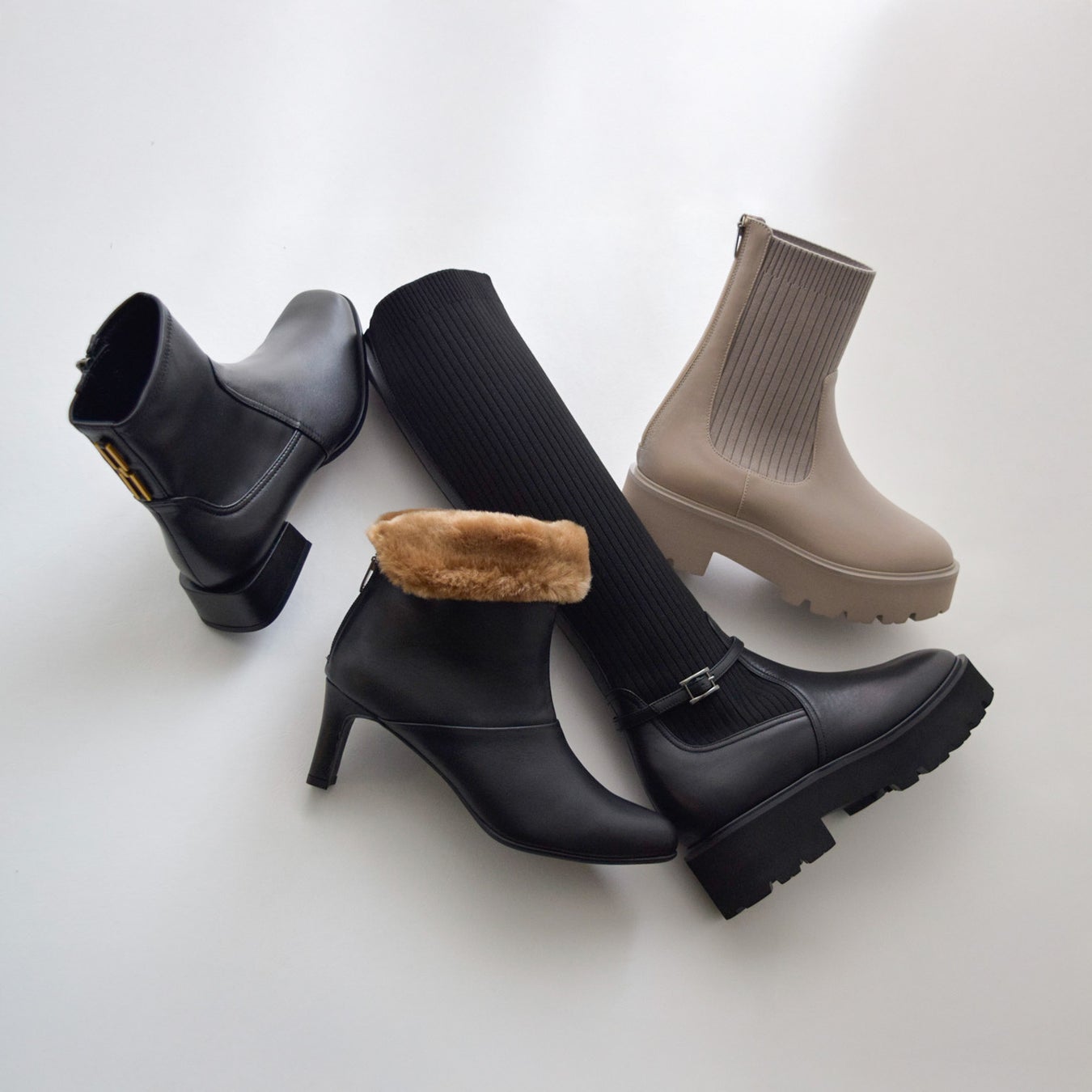トレンドのフラッフィーなテクスチャーをキレイめデザインに落とし込んだブーツ。