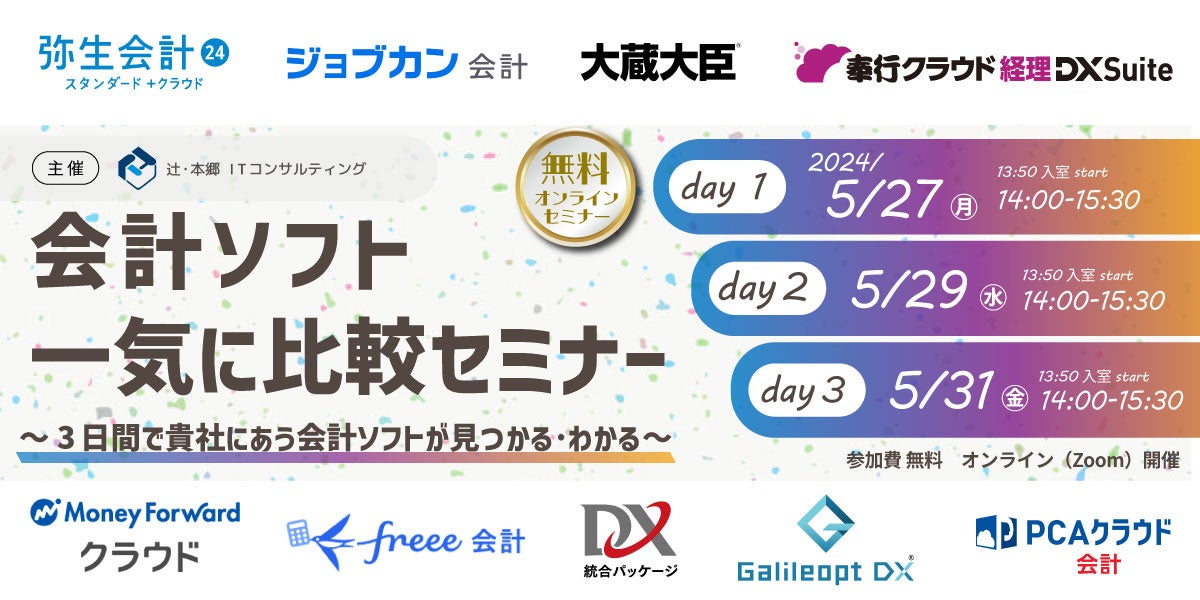 3日間で貴社にあう会計ソフトが見つかる・わかる!「会計ソフト一気に比較セミナー」を5月にオンラインで無料開催