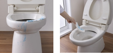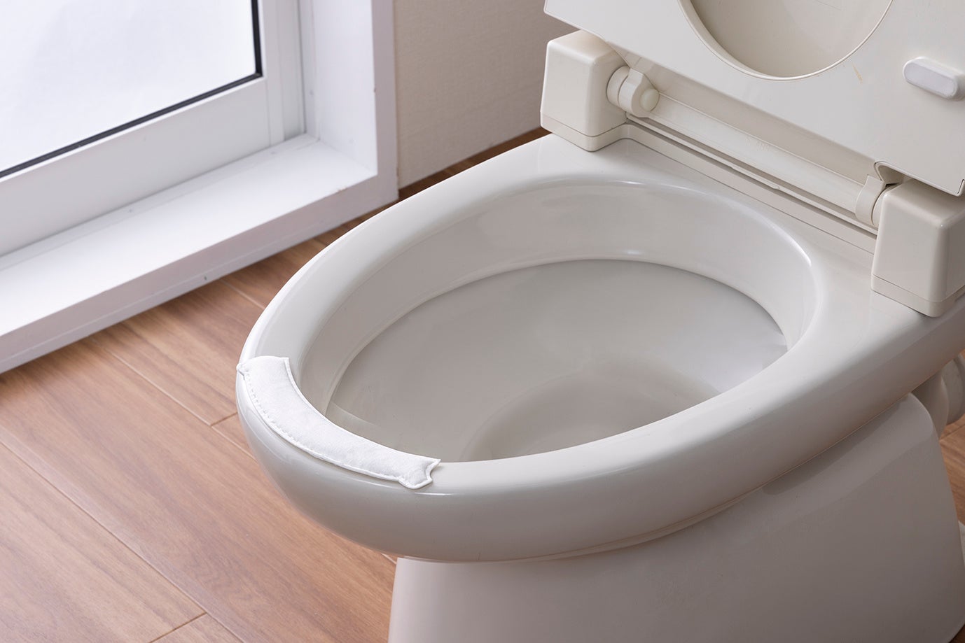 2002年、弊社宛に「トイレの便器のすきまから飛び散るおしっこの汚れに困っています。」という1通のハガキが届きました。調査すると、実は汚れやすい場所であることがわかりました。そんなお悩みを解決すべく、便器と便座のすきまに貼っておしっこの飛散汚れを防ぐ「おしっこ吸水パット」という商品が誕生しました。