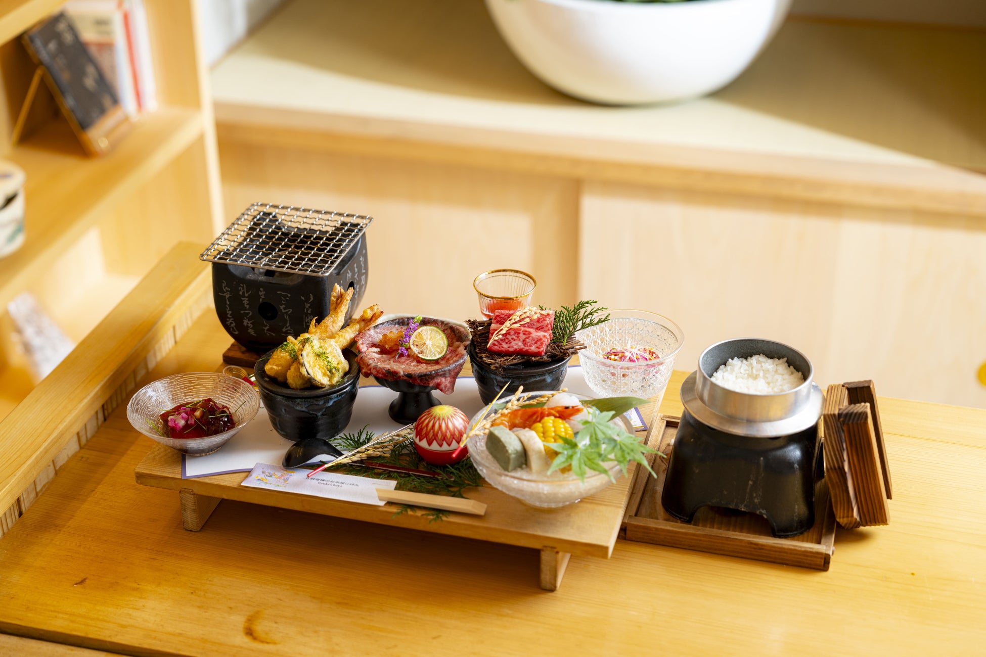 年の夏メニューは七輪を使用したメニューがあり、ご自分で焼いていただくことが1つの特徴です。とろけるように柔らかく、豊かな風味を視覚・聴覚・嗅覚・触覚・味覚を使ってお楽しみください。夏季の京都を五感で体験する新たな丼についてスタッフがしっかりと説明を行います。