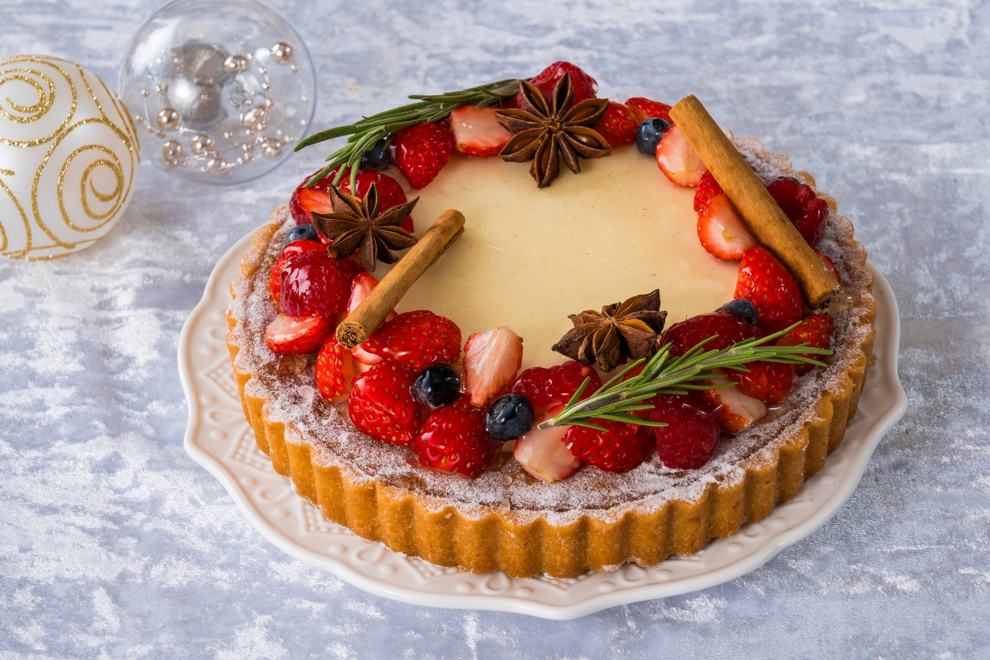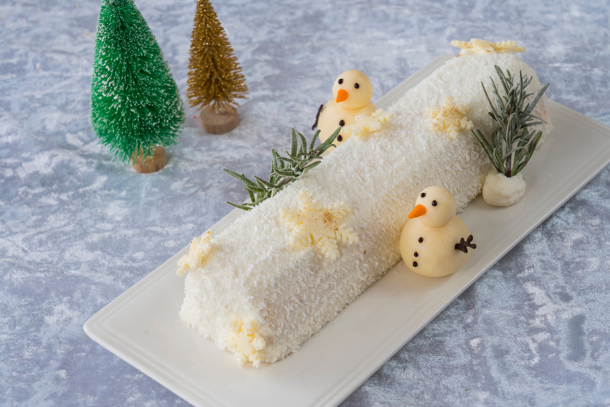 アーモンドタルトにカルダモン風味のムースを乗せた「クリスマス・スパイス・リース」は、苺やブルーベリー、ラズベリーでリースのように飾りつけました。カスタードクリームのロールケーキにココナッツで雪のようなデコレーションを施した「雪だるまも欲しい!」は、雪の結晶に見立てたホワイトチョコレートをトッピングし、横に添えた雪だるまが可愛らしい一品です。