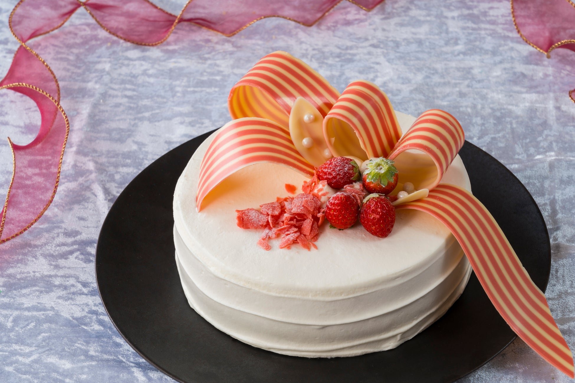 ピンクのリボンを模したチョコレートを飾り、プレゼントボックスをイメージした「今年のプレゼントはなぁに?」は、コアントローシロップのオレンジ風味が漂うふわふわのスポンジで、フレッシュ苺をサンドしたショートケーキです。鮮やかなイエローカラーが目を引くムースケーキ「マーケットへ行こう」は、はちみつとレモンのムースの中に、ヘーゼルナッツペーストにレモン風味を加えたキャラメルを忍ばせ、線路を模ったチョコレートをあしらいました。