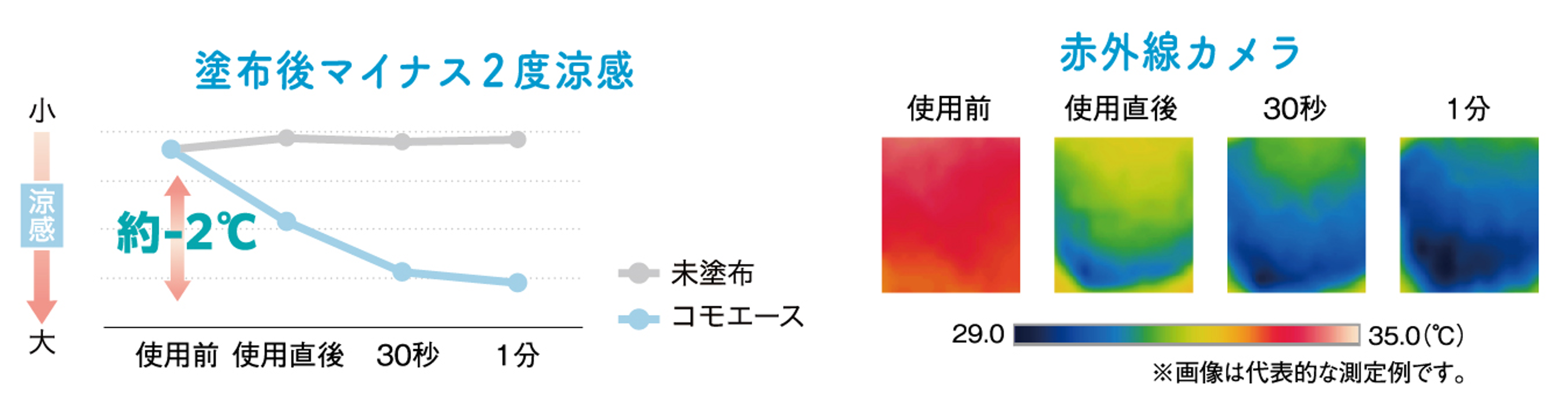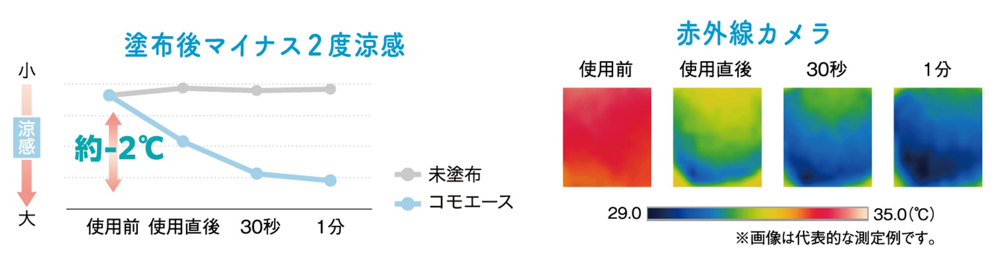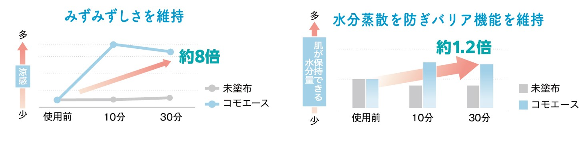 つけた瞬間、マイナス2℃の涼感とうるおいをキープ! (セーレン研究センター調べ)